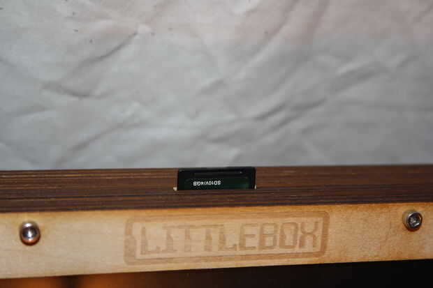 Después de descargar y escribir la imagen de Rasbian en una tarjeta SD, inserte la tarjeta en la Raspberry Pi y encienda su LittleBox.