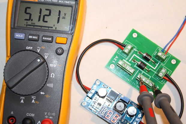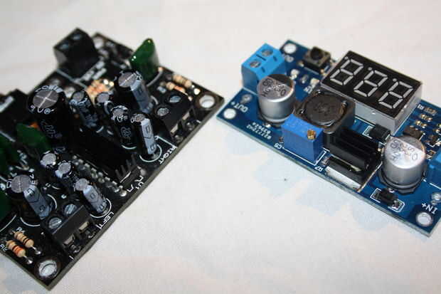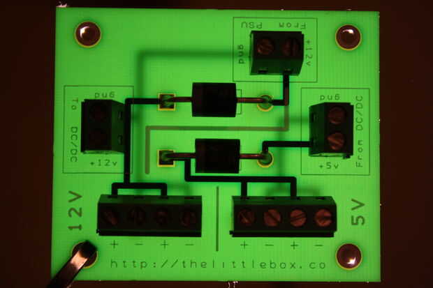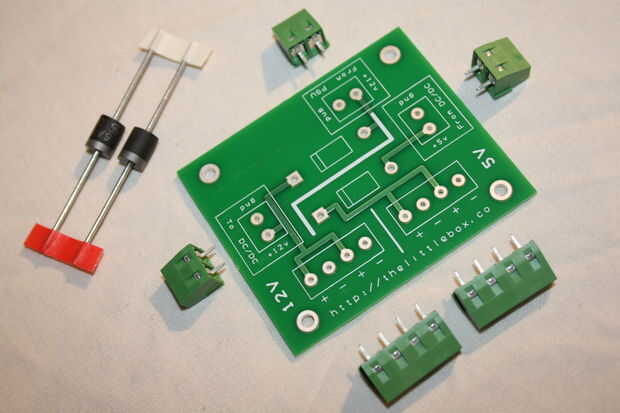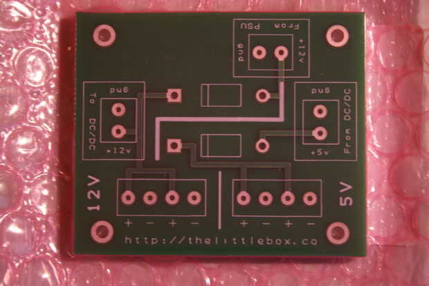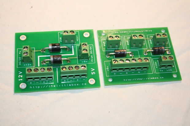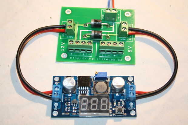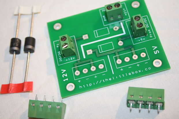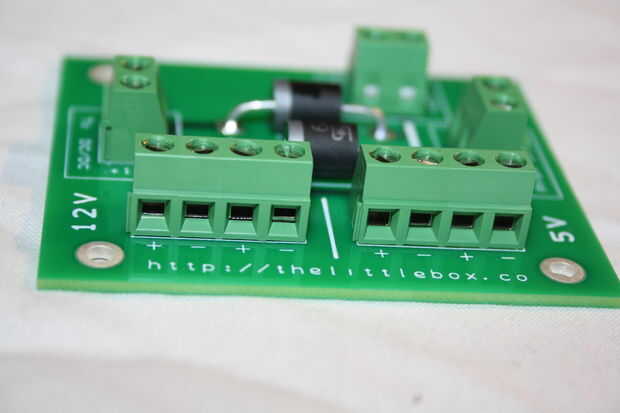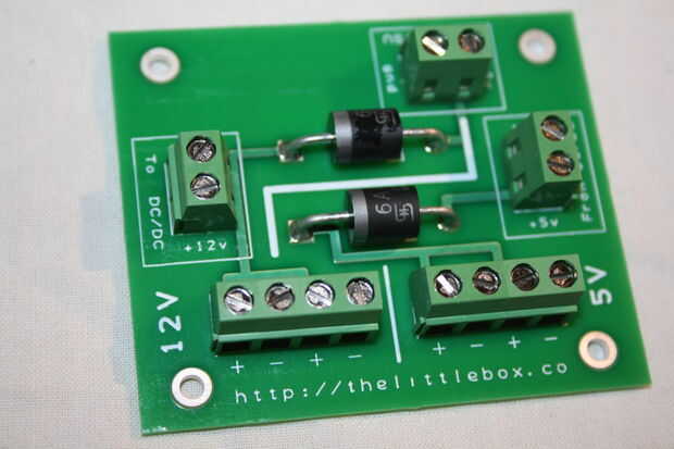 El PCB de potencia nuevo, actualizado para trabajar con los diferentes C.C. cc, va juntos sin culpa. Comprobación de las tensiones hay una menor caída de tensión sobre la menor clasificación de diodos. Establecer el convertidor de DC DC 5.3v salidas 5.121v en el riel de alimentación. Recuerde tener los terminales hacia la dirección correcta antes de soldar a la placa.