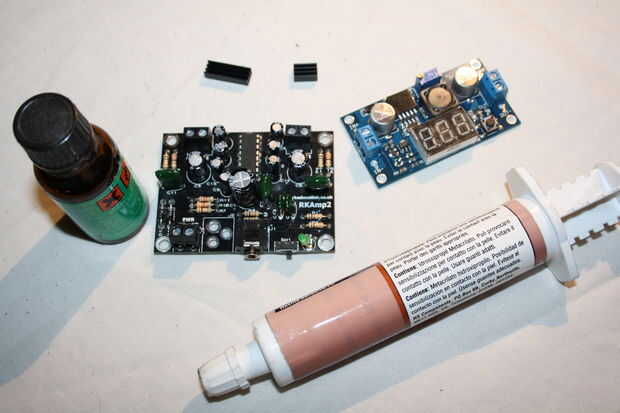 El TI LM2596 DC CC y el Amplificador estéreo TEA2025B recomiendan refrigeración pasiva cuando se ejecuta en niveles superiores de energía. Para ayudar a combatir el exceso de calor he adjuntado un disipador de calor para cada IC con adhesivo térmico, te suministro cinta adhesiva con los kits LittleBox.