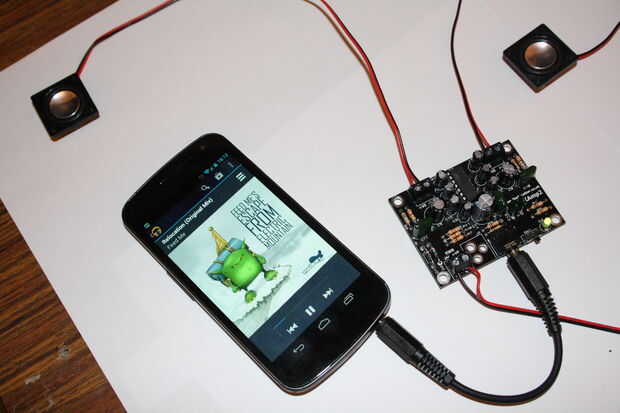 Cuando haya terminado de hacer el amplificador es siempre una buena idea probarlo. Conecte un juego de cables para los altavoces, trate y les de la soldadura para que los cables negativo y positivo son las mismas en ambos altavoces.