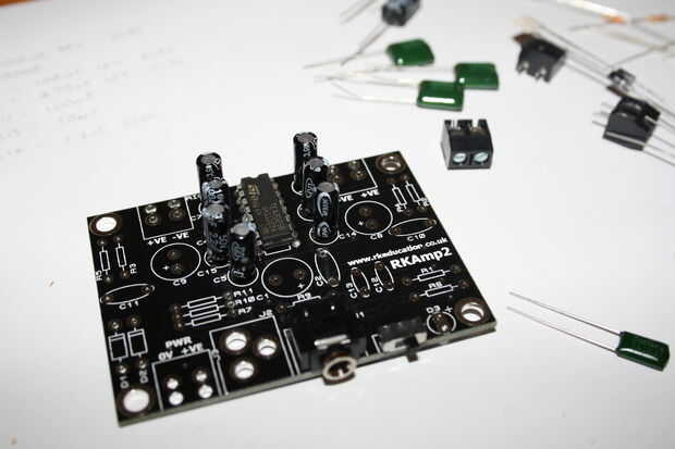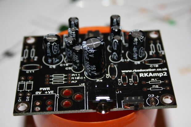 El RKAmp2 viene en un kit, por lo que el primer paso es armar este kit. Hay no hay instrucciones paso a paso viene en el kit, pero hay documentación en la Página Web de Educación de RK.