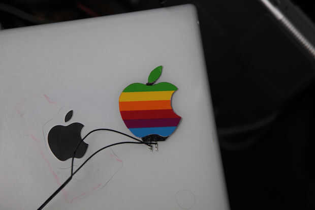 este gizmo poco agrega el icónico "palpitar de Mac para dormir" a una etiqueta de logotipo Apple ordinario.La idea surgió al pasar por la Apple Store en Palo Alto, California una noche. Después de horas, cuando la tienda está "dormida"