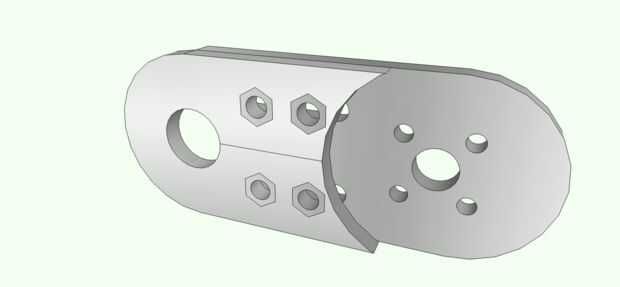 Decidí ir con el Monte deslizamiento técnica, donde el Monte se separa en dos piezas. Una mitad es soldado o conectado a los camiones. La otra mitad se atornilla al motor. Están conectados con los tornillos que se deslizaron a través de orificios perforados en el lado del carro del Monte y a través de las ranuras en el lado del motor de montaje con las arandelas. Aflojando los tornillos, puede deslizar el lado del motor de la montura hacia adelante y hacia atrás, así ajustando la tensión de la correa.