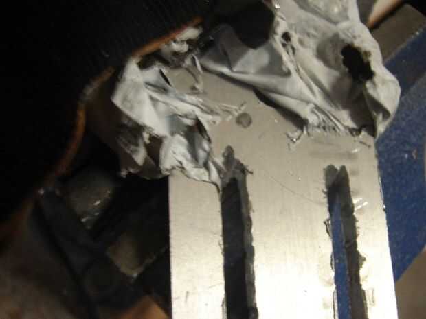Otra vez usé la amoladora para cortar la pieza de aluminio, utilizando una sierra de mano para conseguir el acabado corte acabado con seguridad. En la sexta imagen se puede ver donde usé los alicates para sostener la pieza de aluminio. Hombre estaba caliente!! Claramente vemos cómo utilicé los cuatro agujeros para pernos perforados a línea hacia fuera el perno del surco de deslizamiento.