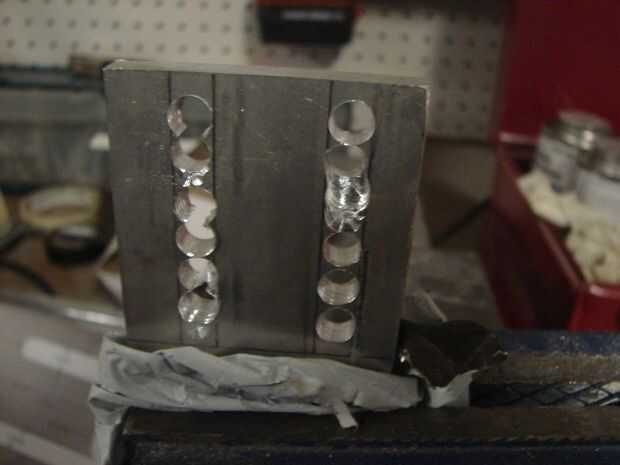 Entonces comencé a pulir los surcos por agujeros entre las líneas de la ranura donde va a ser. Después de eso empecé a moler abajo y a cada lado de cada línea de agujeros. Esto me tiene un par bastante razonable de ranuras donde se deslizarán los pernos!