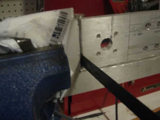 Terminé de suavizar y enderezar los lados del soporte y ligeramente ampliación y suavizar el perno deslizante surcos así. Yo también suelo abajo la pieza central de aluminio entre las ranuras del perno así que podía deslizarse más cerca al carro de la patineta, después de lo cual he creado una bonita curva en el extremo del motor de toda la obra. Fue cerca de 8 terminado con ambas piezas. Habiendo comenzado en unos 5 pensé que me tomó unas tres horas a la rutina de taladro de corte ambas piezas al estado de los hechos. Decidí esperar hasta el día siguiente para iniciar la mano presentación abajo las aristas más agudas y que se vea mejor.