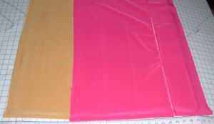 La mayoría de la falda va a ser color de rosa así que corte mi tela 16 largo por todo el ancho. Esto incluye el margen de costura de 1/2 al colocar la pretina y margen de costura de 1/2 para sujetar la pieza de mostaza.