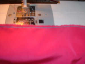 10. tomar a su máquina de coser y puntada de zig-zag sobre la cadena. A partir de un 1/2 pulgadas de la cremallera y dejar 1/2 antes del otro lado de la cremallera.