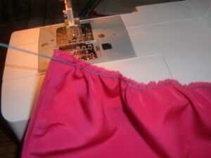 13. Oprima la cintura hacia abajo, asegurándose de que el margen de costura (en el interior) es hacia arriba, hacia la parte superior de la falda.