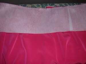 12. ahora vamos a la falda de lado y trabajar en la cintura. Vas a tomar a la tela de la pretina y aplicar la entretela fusible al revés de la tela. La técnica que utilice para aplicar la entretela es esto. Pongo a la tela con el revés hacia arriba. Colocar la cara de entretela fusible en el lado equivocado de la tela. La interconexión con el agua de la niebla, tome un pedazo de muselina y colóquela en la parte superior y coloque la plancha en la parte superior. Trabaje en cada sección como esta hasta que toda la pretina se han fusionado con la entretela. No mueva la plancha hacia adelante y hacia atrás. Sentarse en cada sección y descansar durante 15-20 segundos y seguir adelante. Todos dejar la cintura completamente fría. Una vez frío voltee a la derecha y darle una buena prensa. Esta técnica le da un aspecto agradable y suave.