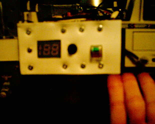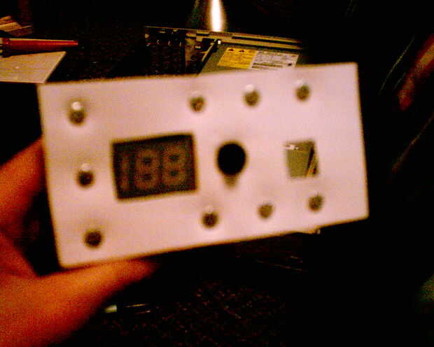 Ahora el panel de control. Tomé una tapa de plástico y rastrear la apertura para la bahía de disco dura en él. Luego cortar la Plaza y tiene una pantalla de dígitos digital. Había trazado un agujero para, el interruptor del empuje y el nivel de audio para el amplificador de la unidad de cd. Usé algunos más Mecano para construir un marco para poner en la parte posterior del panel y evitar que se deforme debido al cambio. amplificador de reproductor de cd (un oído espía) extrae la pantalla digital, que es 12 voltios 12 voltios de potencia. Tuve que probar con las conexiones en la parte posterior de la pantalla para saber qué conexiones eran energía hacia fuera. eran los dos últimos para mí. mi pantalla se fundió en mí, ya que no estaba diseñada para 12v. Pero todavía dejó el amplificador sacar energía de él, así que no había ninguna necesidad de preocuparse. Directamente podría conectar el amplificador a los 12v, pero no lo hice porque quería utilizar la pantalla.
