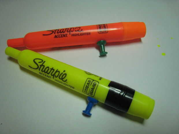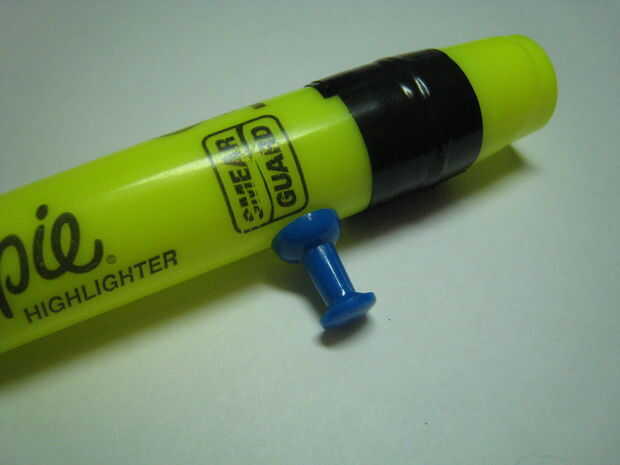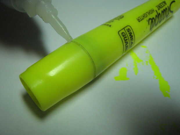 RÁPIDAMENTE, antes de que el pegamento se seca, ponga la tapa en como si usted estaba usando normalmente el marcador y pone más pegamento alrededor de él