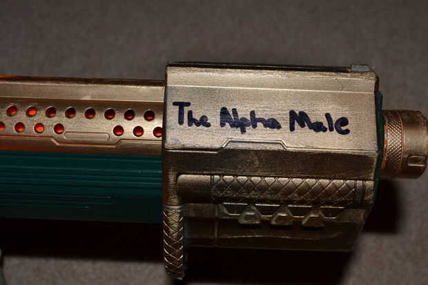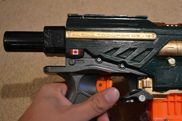 Así que he aquí el macho alfa, un modificado Nerf Alpha Trooper. Yo jugaba de la alpha trooper a nombre de mi arma alpha masculino, ya que es casi la mejor arma que tengo. Además el trabajo de pintura, ¿cuál es nuevo? Un poco, realmente.