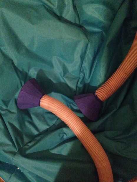 Es un teléfono donde los niños pueden hablar con mutuamente a través de un tubo con un cuerno.