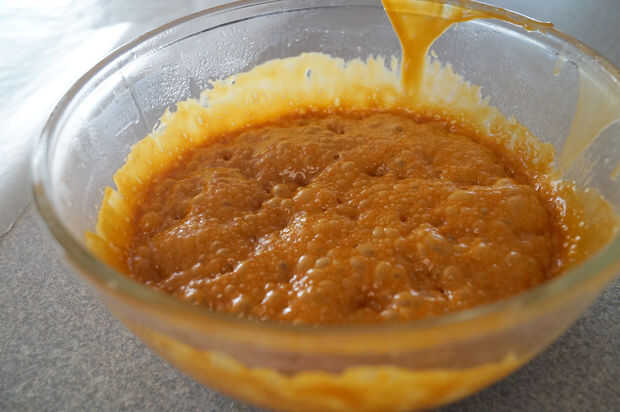 Coloque el palillo de la mantequilla en el tazón de fuente con 1 taza de azúcar moreno ligero, 1/4 taza de jarabe de maíz y 1/2 cucharadita de sal. Microondas en máxima potencia durante dos minutos. Sacar y remover y añadir 1 cucharadita de vainilla y 1/2 cucharadita de bicarbonato de sodio. Mezcla bien con cuchara de madera antes de colocar nuevamente en el microondas. Microondas durante otros tres minutos. Reloj de la marca de uno y medio minuto, sacar y revolver (tenga cuidado y use guantes para el almíbar está caliente) continuar a la microonda para el otro uno y medio minuto. El jarabe será un hermoso Carmel mantecoso color marrón. El tiempo puede ser menor dependiendo de tu microondas. Acabo de recibir un nuevo microondas y mina sólo tomó 2 1/2 minutos este tiempo. Debe ser el color de la foto que proporciona.