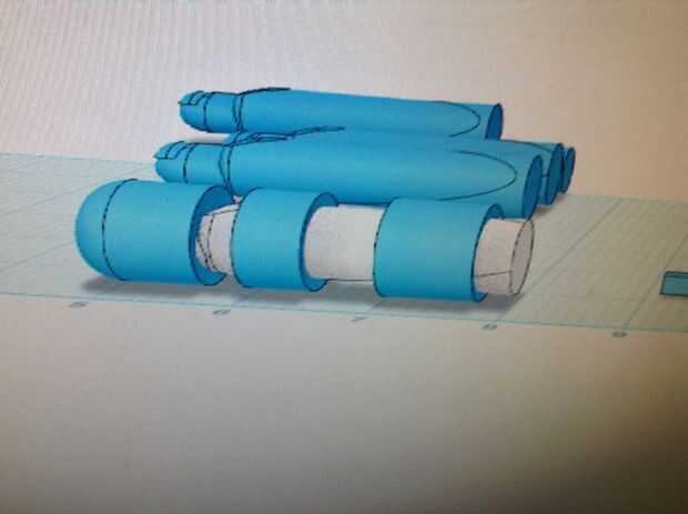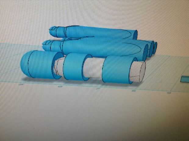 A continuación hacer un cilindro que tiene la misma longitud de los rectángulos que usted dibujó, y que es el diámetro de.1 pulgadas añadido al diámetro del dedo. Hacer uno de estos para cada articulación de cada dedo. En total debe haber 14 cilindros. A continuación mantenga el diagrama hasta la pantalla y mirar a través de y colocar cada cilindro correspondiente a cada rectángulo. Su proyecto comienza a parecerse a la imagen que usted dibujó.