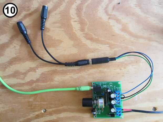 Mi iPod no tenía suficiente energía para conducir el circuito así que compré un kit de Velleman MK190 5 vatios amplificador estéreo (Foto 1) para aumentar el rendimiento. El MK190 es un barato, muy fácil de construir amplificador que fue exactamente lo que necesita hacer que todo funcione perfectamente. Usted podría cualquier amplificador estéreo similar de 5 vatios para hacer esto.