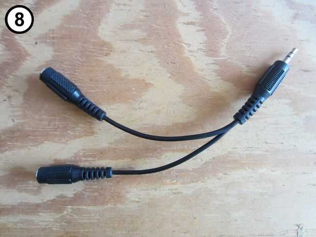 - 1 1/8" estéreo cable con hacer tapones en ambos extremos - Radio Shack 42-962 (no foto)