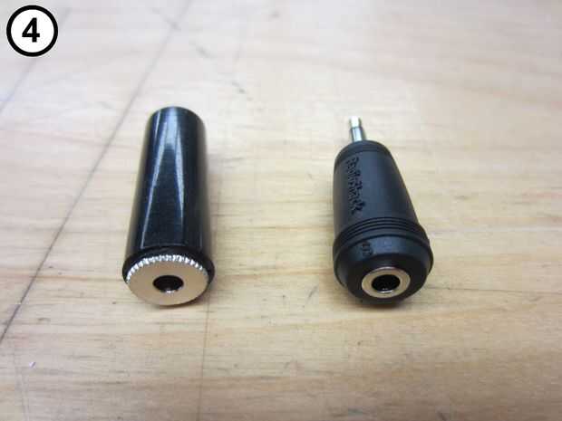 - 1 1/8" estéreo jack 1/8" adaptador de clavija mono - Radio Shack 274-368 (foto 4, derecha)
