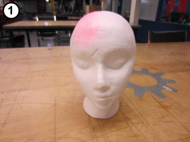 - Cabeza de maniquí de espuma de poliestireno (Foto 1) - utiliza la cabeza de un niño porque parecía más ciencia ficción que una cabeza de maniquí adulto.