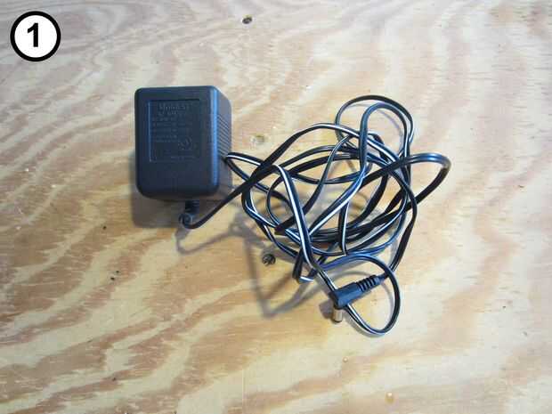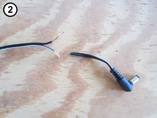 1. Tomar la fuente de alimentación de 9 voltios (Foto 1) y corte el cable de alimentación (Foto 2).