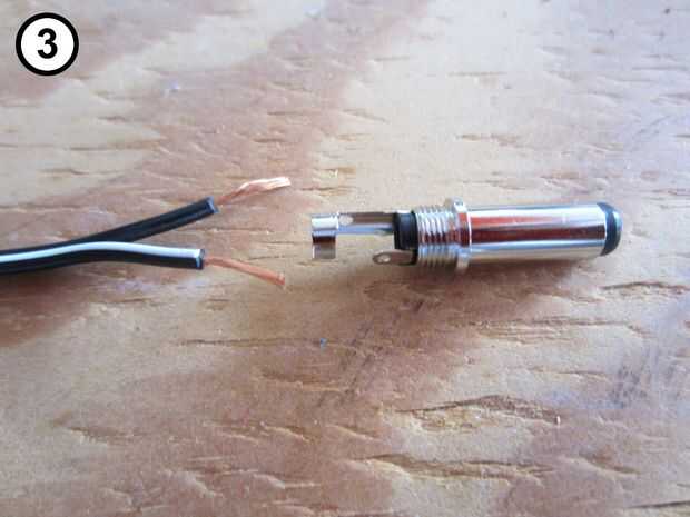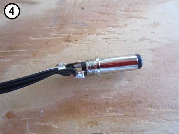 4. Soldar el cable positivo con el cable corto de enchufe y soldadura el cable negativo (tierra) al cable largo del enchufe (foto 4).