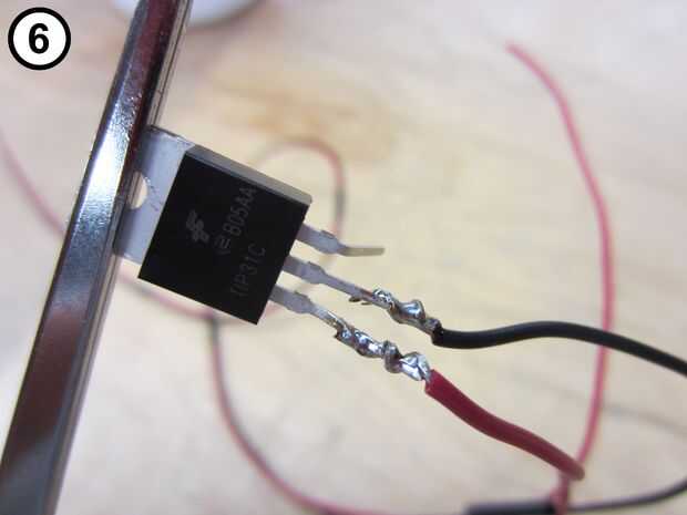 6. Suelde el cable izquierdo (foto 6).
