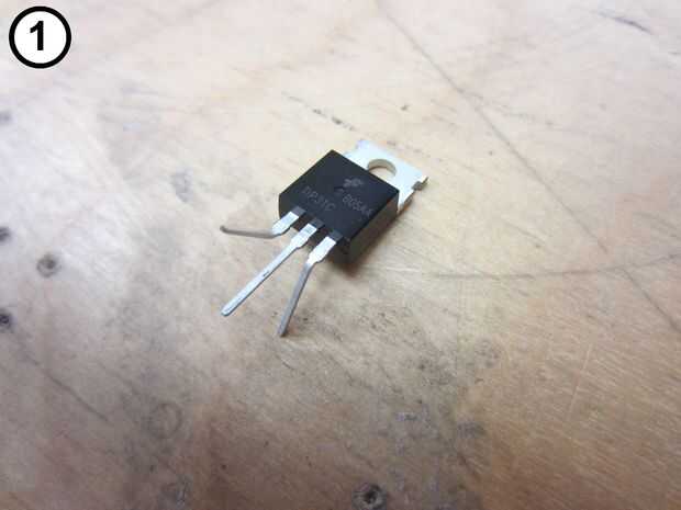 1. Para que sea más fácil de colocar y soldar los cables con el transistor, doble suavemente los cables en el transistor (Foto 1).
