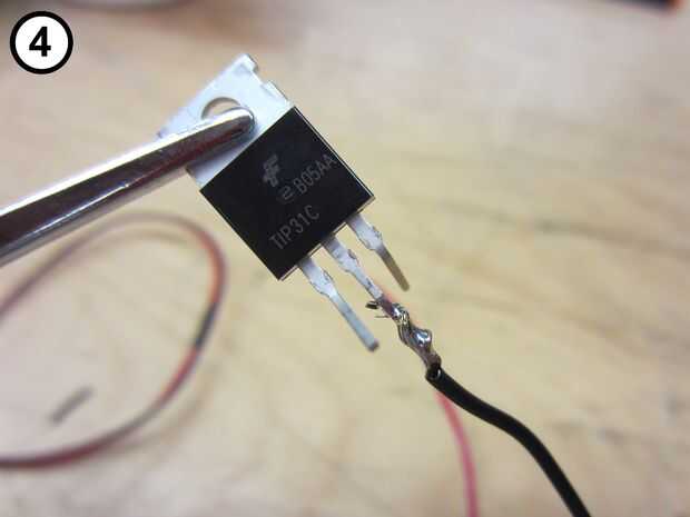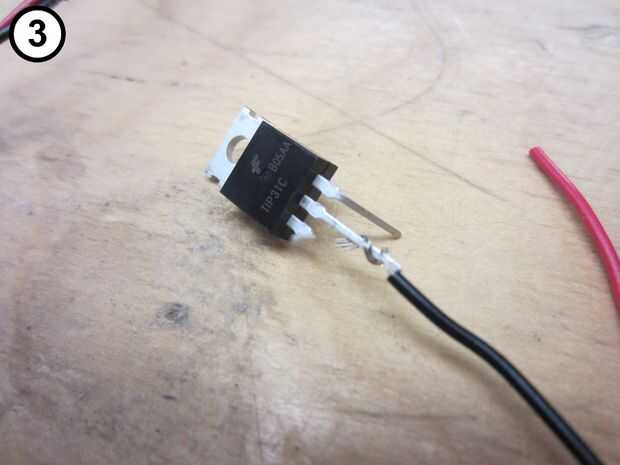 3. Conecte el cable negro con el conductor de centro en el transistor (Foto 3).