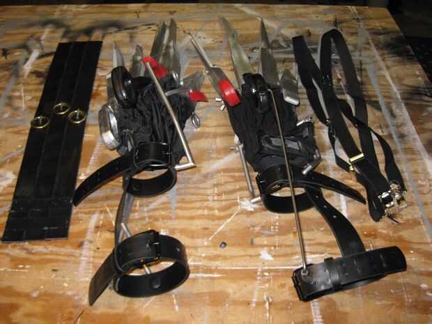 5. un par de ligas negras. Me corte cada lado en la parte delantera y había cosido detrás junto con pernos de seguridad. Tres pins a mi derecha... dos alfileres en mi lado izquierdo... cortar a diferentes alturas.