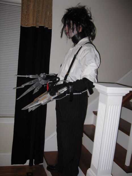 1. un negro peluca, que corte todo Grunge. Laca y gel no funcionaba, usé pegamento de aerosol.