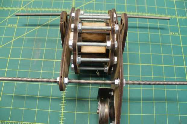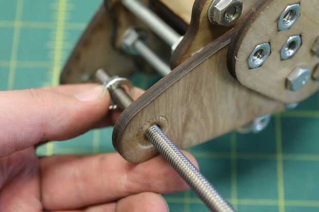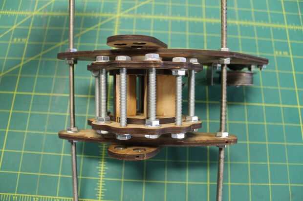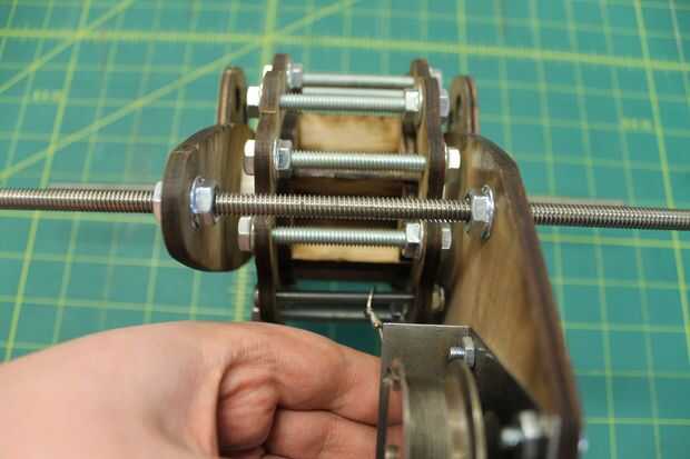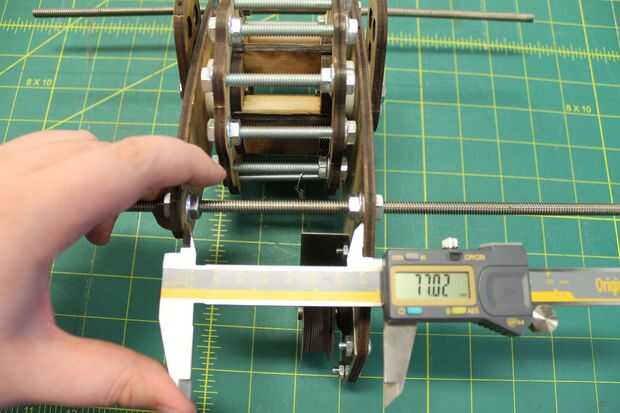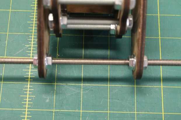Mida la distancia entre el extremo de una de las barras y la cara del soporte del núcleo. Ajuste las tuercas hasta que la distancia entre ambos extremos de la varilla está igual, asegurándose de que hay suficiente espacio para la base giren libremente entre los corchetes. Una vez satisfecho, mida la distancia entre las abrazaderas del núcleo y reflejan a la varilla roscada en el otro lado de la Asamblea de base. Mantener esta distancia centrarse al ajustar la varilla al otro lado.