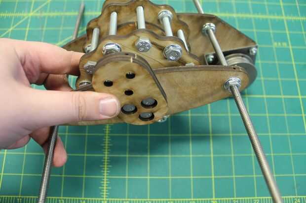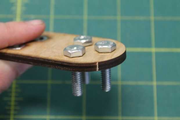 Inserte tres de 1" hexagonal pernos a través del enlace de cigüeñal, seguido por el tubo de PVC con tornillo de guía. Puede que necesite girar los pernos en el perno de guía para que pueda recorrer todo el camino hasta el otro lado.
