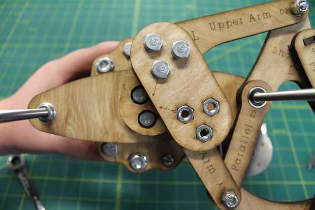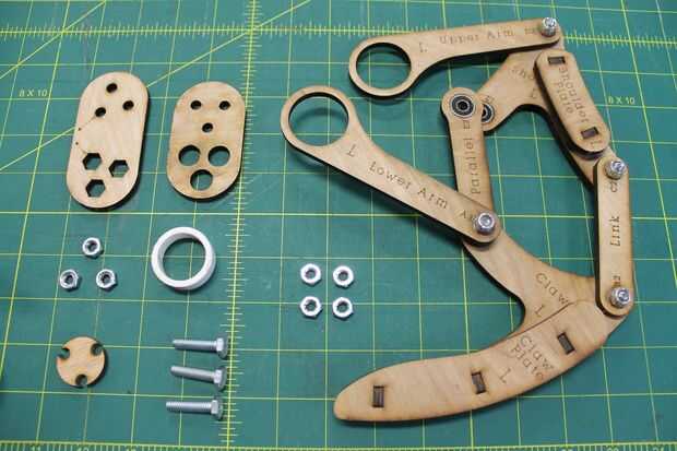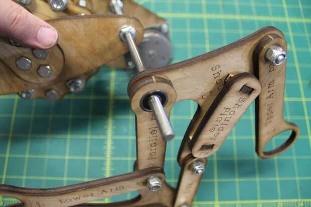 Coloque al montaje del cigüeñal de enlace aunque los agujeros más grandes en superior y brazos más bajos y uso uno de 7/16" llaves a tornillo para placa base externa abajo. Las flechas en el enlace de cigüeñal conviene hacia el centro de rotación del cigüeñal. Mantener un poco suelto por ahora - va ser, ajuste más adelante.