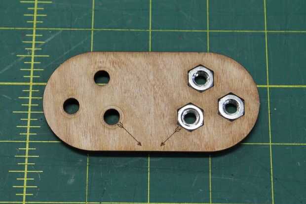 Inserte las tuercas de maleficio en el enlace del cigüeñal usando su martillo. Asegúrese de que usted inserte las tuercas al ras con la superficie con las marcas en él (de lo contrario, los tornillos que usará más adelante no serán capaces de llegar).