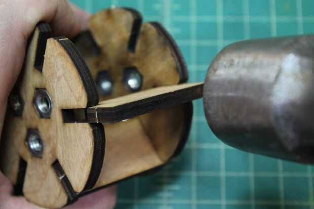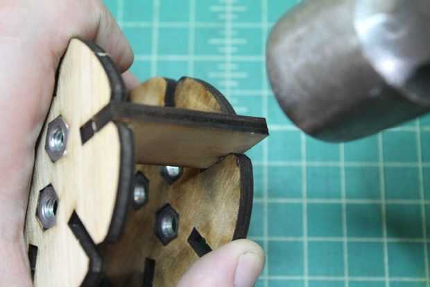 Inserte tuercas hexagonales en las placas base interior usando un martillo.