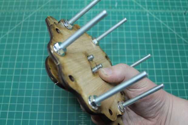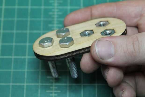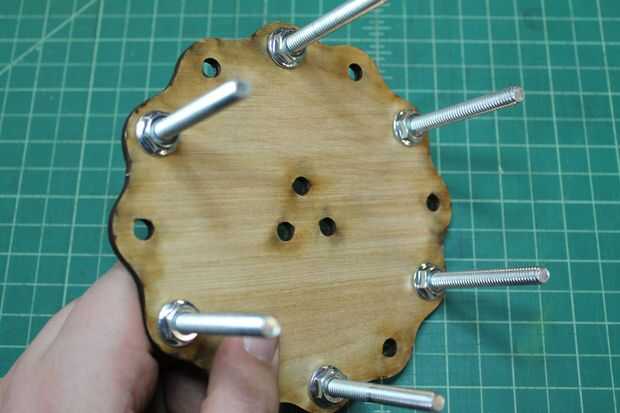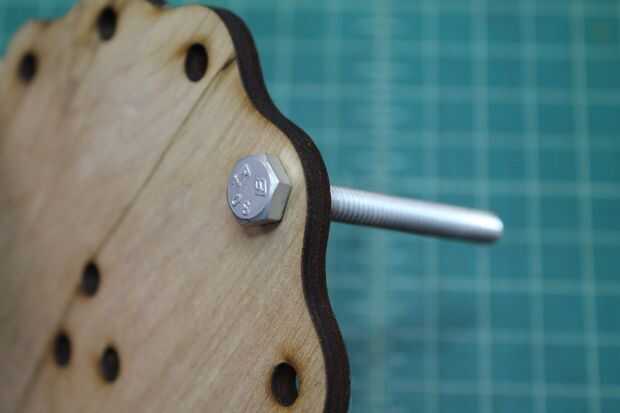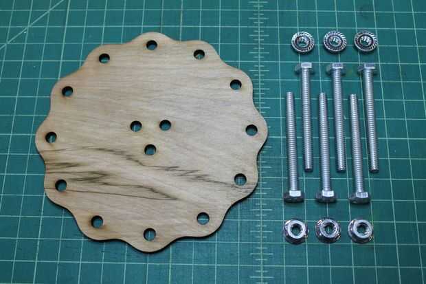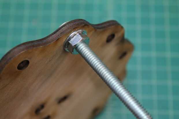Coge seis 2 1/2" hexagonal pernos y tuercas dentadas seis y comenzar a conectar a la placa de base externa. Inserte el tornillo primero, bloqueo hacia abajo firmemente con una tuerca dentada, omitiendo todos los agujeros entre cada uno.