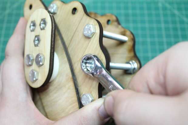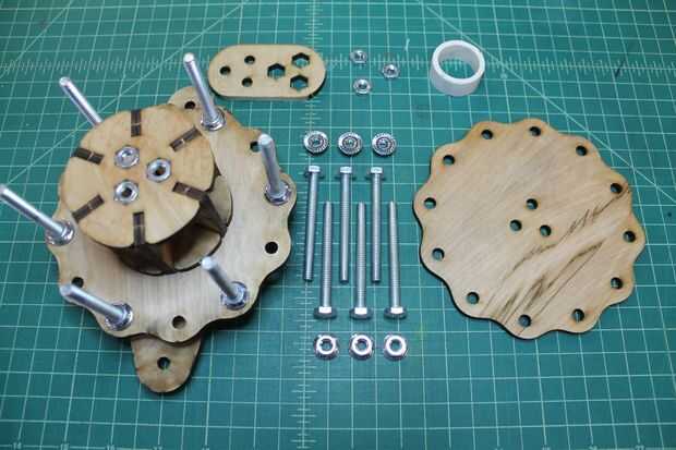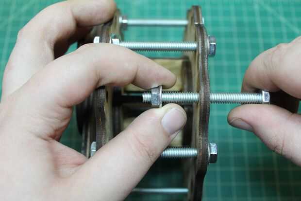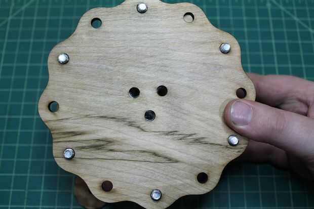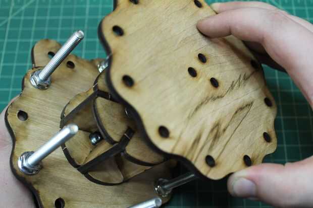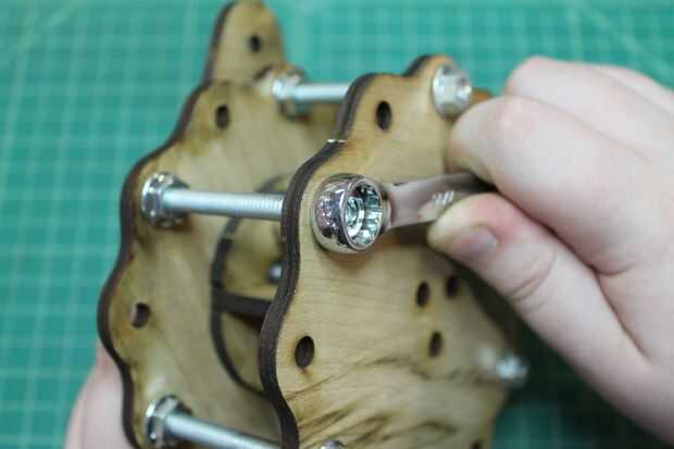 Colocar la segunda placa de base externa en la Asamblea anterior. Alinee de modo que los agujeros en el centro están en consonancia con las tuercas de maleficio contenida en el núcleo interno. Utilice las tuercas de bloqueo dentada para asegurar en su lugar.