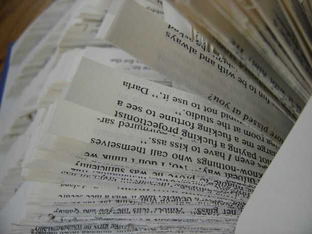 -Diseño de la hoja corte en cada página para que los fracasos de una hoja hacia fuera en un lado y el espacio negativo de los fracasos del otro.
