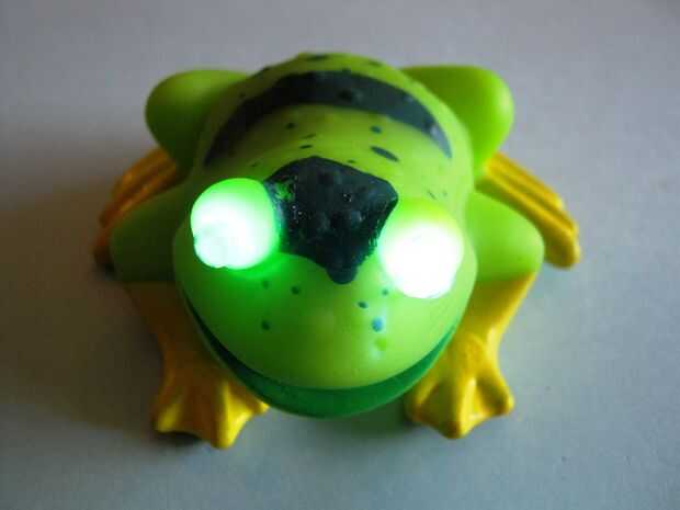 este divertido y fácil para hacer escritorio juguete fue inspirado por el Hipnosapo de la serie de televisión Futurama. El maravilloso LED HynoFrog utiliza lento cambio LED del color para crear un efecto hipnotizante. El maravilloso LED HypnoFrog emplea un interruptor de lengüeta magnética para activar y desactivar: cuando la rana se coloca encima de un imán, los ojos se ilumina y empezar a cambiar de colores; Cuando se detiene.