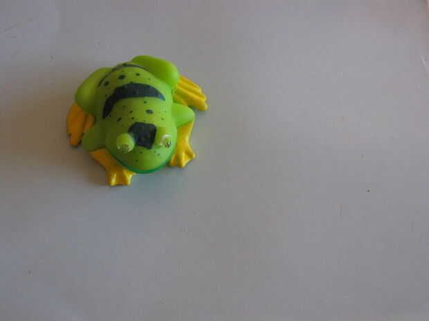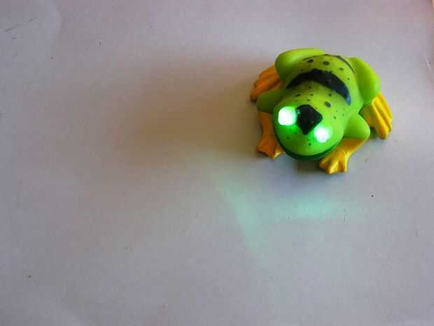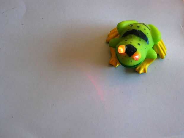Las fotos de abajo muestran la rana sobre una superficie plana con un imán ocultado debajo de la derecha.