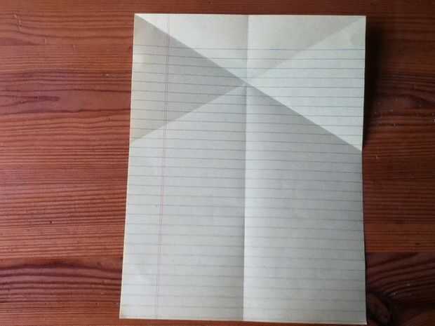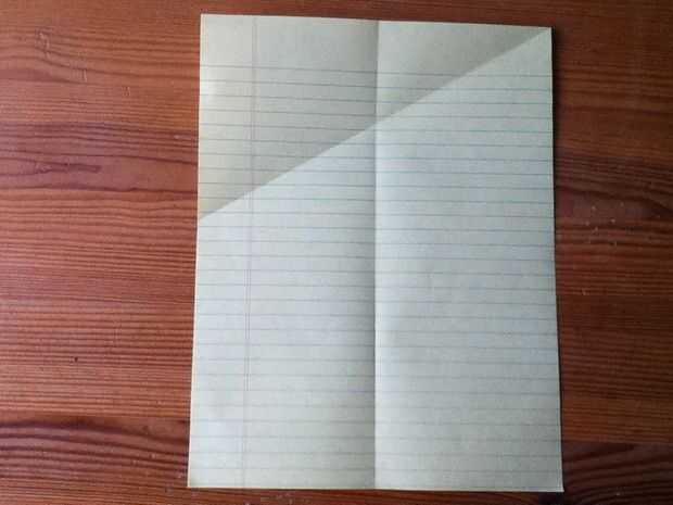 Ahora coge la esquina superior izquierda y darle el medio, por lo que es el pliegue en la esquina derecha.