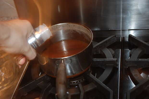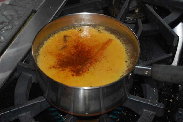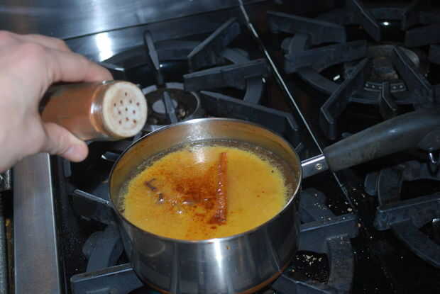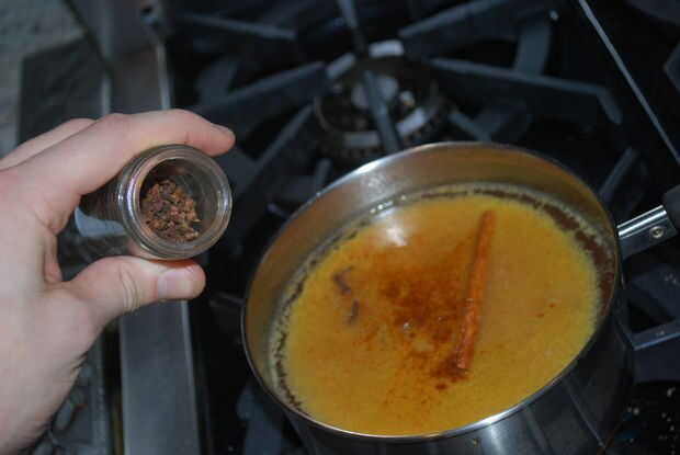 Tirar todas las especias (1 cucharadita de pimienta de Jamaica, calabaza especia, pimienta de Cayena, 3 dientes y 4 palitos de canela.