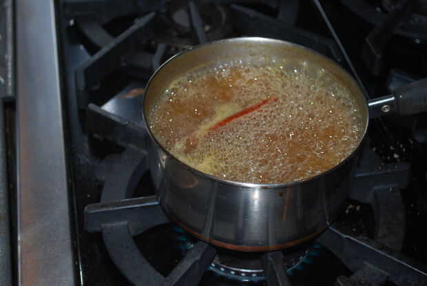 Degustar la sidra y si necesita un poco más retroceso, añadir alguna pimienta de Cayena. Cubra la olla y dejar reposar una hora, o si desea servirlo mientras su caliente.