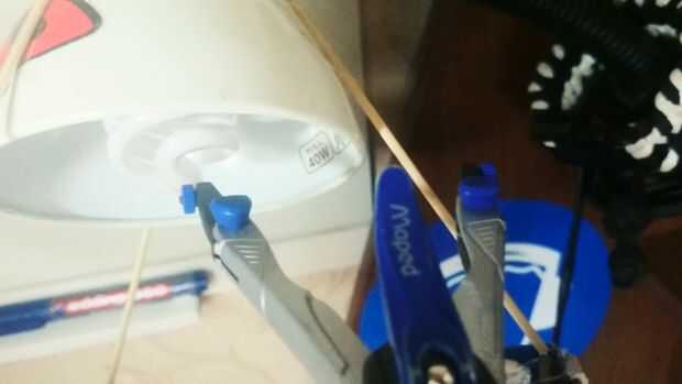 Hacer un anillo de cartón, con diámetro de 4cm más grande que el diámetro de la lámpara