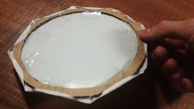 Cortar un círculo de bolsa de plástico o materia textil (textil es mejor) y fije el anillo de cinta