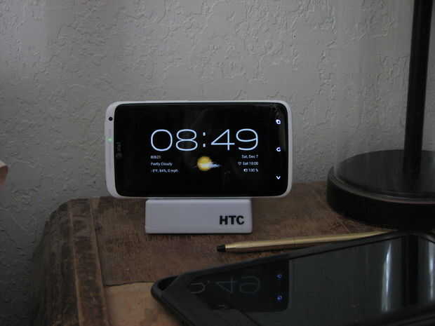 Aquí es mi despertador mesilla fresco. Tenía algunas letras de vinilo adhesivo y pensamiento que utilizaría para vestir un poco las cosas. (La aplicación de reloj es "Muelle de reloj").