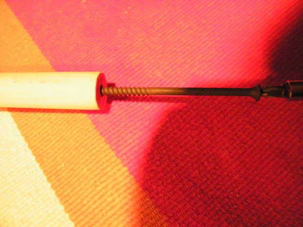 2) después de que hace el agujero, luego inserte el tornillo y sujetando firmemente la clavija uso taladro destornillador para atornillarlo hasta que ya no puede. Vibrará mucho pero no se romperá. Esto es lo que usted necesitará stick monopie en la tierra para que sea estable.