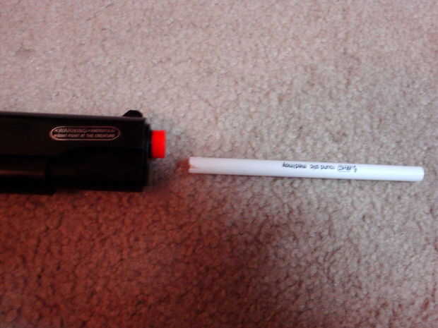 2. trata de encajar el tubo de la pluma en el extremo de su arma, si cabe - vea el paso 4, si no entonces consulte el paso 3.