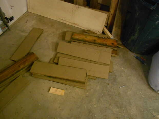 Que debíamos usar madera de palets viejos, pero realmente no tienen mucho y que habría sido demasiado trabajo de todas formas para sacar aparte sin las herramientas adecuadas, por lo que fue y consiguió madera de mi casa. Tengo una pila grande de unos 20" tarjetas de una baraja que mi papá corte y son todavía muy útiles, así que nos tomó unos 30 de los y algunos otros consejos también.